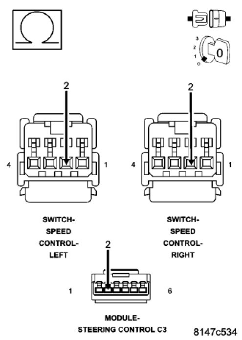 NOTE: The measurement must be taken from both Speed Control Switch harness connectors.