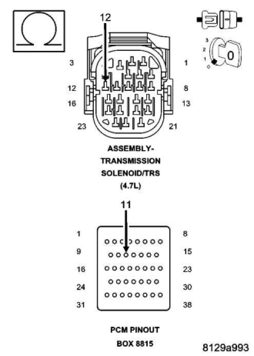CAUTION: Do not probe the PCM harness connectors. Probing the PCM harness connectors will damage the PCM terminals resulting in poor terminal to pin connection. Install Miller tool #8815 to perform diagnosis.