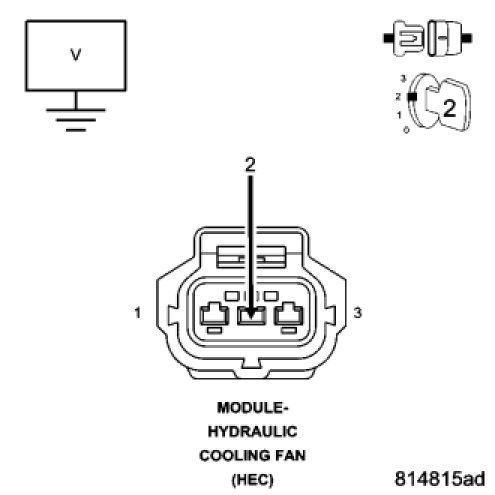Look for broken, bent, pushed out or corroded terminals. Verify that there is good pin to terminal contact in the Hydraulic Cooling Fan and the Front Control Module (FCM) connectors.