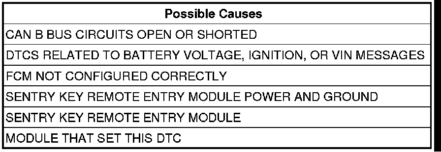 NOTE: Check for FCM configuration, CAN B or C hardware electrical, VIN Missing/Mismatch, battery or ignition related DTCs.