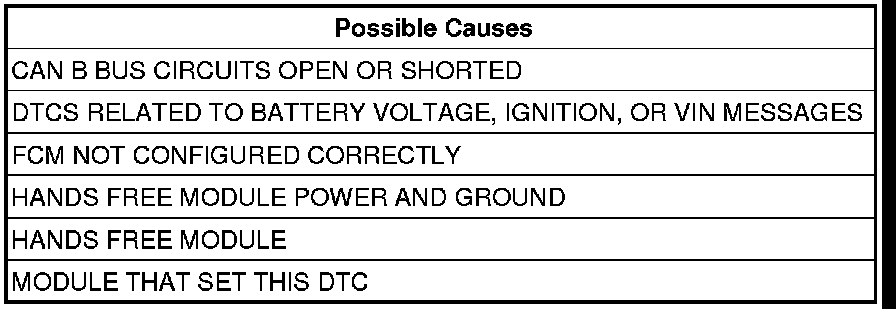 NOTE: Check for FCM configuration, CAN B or C hardware electrical, VIN Missing/Mismatch, battery or ignition related DTCs.