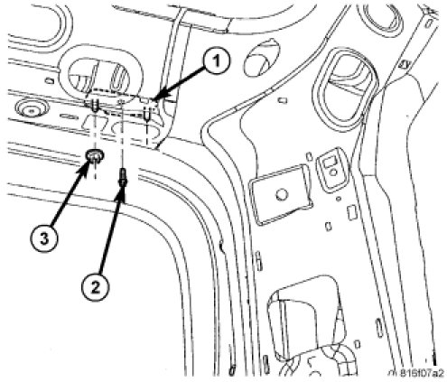 1. Position the liftgate onto the vehicle and install the six body bolts (1).