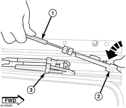 3. Push the guide assembly (1) and drive cable rearward past the hard stop location.
