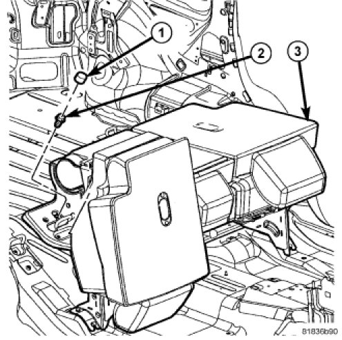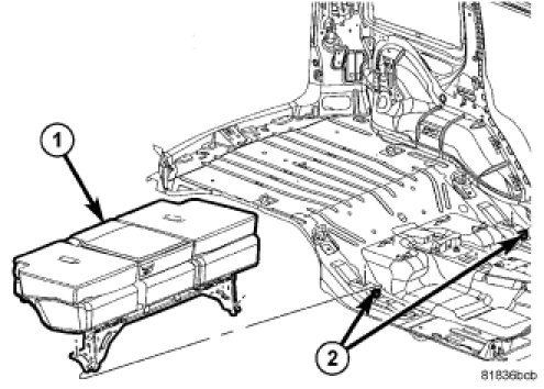 2. Install the seat assembly (1) into the vehicle from the liftgate.