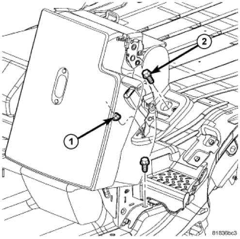 7. Tumble the left side seat forward and tighten the center seat fasteners (1 and 2) to 50 Nm (37 ft. lbs.).