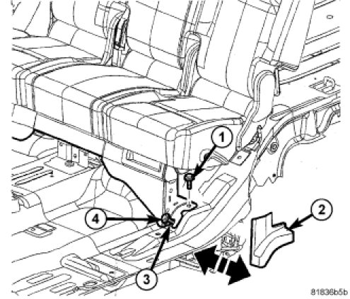 CAUTION: Do not tumble the left seat forward before tightening of the front assembly bolts is complete. Failure to follow these tightening instructions may result in a seat assembly that does not latch properly.