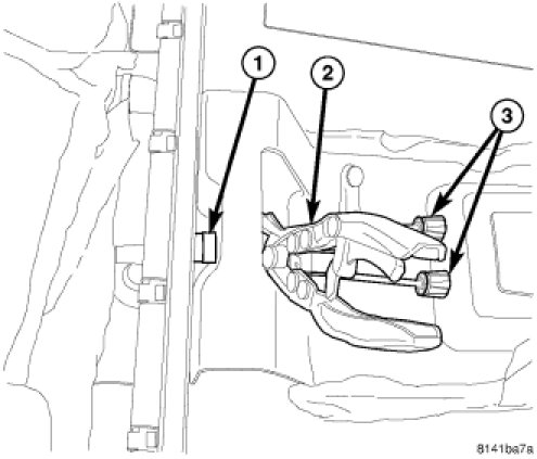 4. Install the 2 front cable routing clamps and the 3 nuts (2&4).