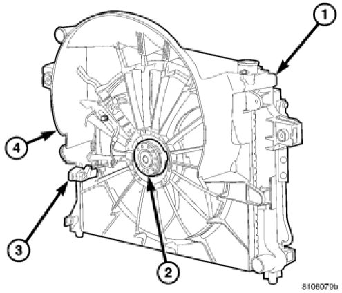 The radiator cooling fan used on the 4.7L engine is a hybrid design. The hybrid fan system consist of a low speed viscous driven mechanical fan and a electrical fan.