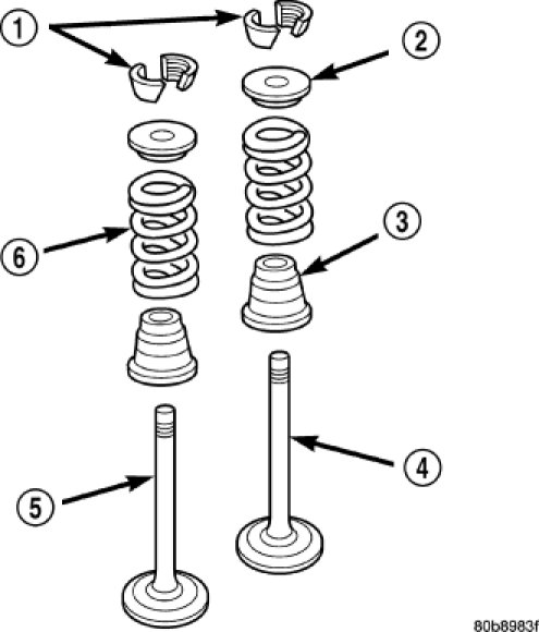 3. Using Special Tool 8426 Valve Spring Compressor, compress the spring and install the two valve spring retainer halves.