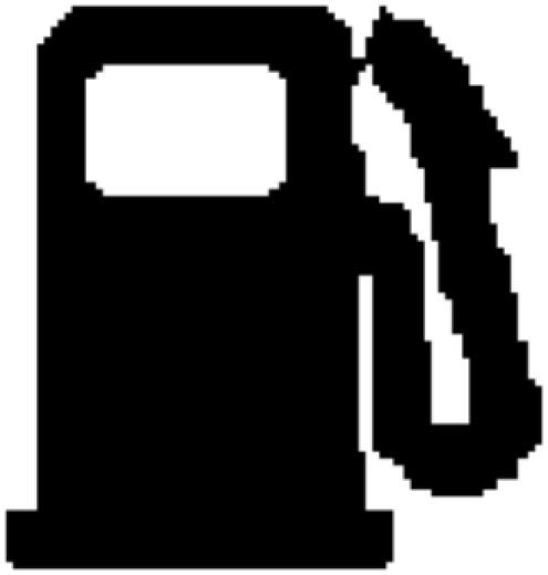 The low fuel indicator consists of a stencil-like cutout of the International Control and Display Symbol icon for Fuel in the opaque layer of the instrument cluster overlay. The dark outer layer of the overlay prevents the indicator from being clearly visible when it is not illuminated. An amber Light Emitting Diode (LED) behind the cutout in the opaque layer of the overlay causes the indicator to appear in amber through the translucent outer layer of the overlay when it is illuminated from behind by the LED, which is soldered onto the instrument cluster electronic circuit board.