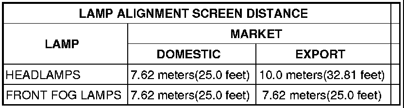 7. Measure the distance between the vertical zero reference and the optical center of the nearest lamp being aimed (head or fog). Transfer this measurement to the alignment screen with a piece of tape placed vertically across the appropriate (head or fog) lamp horizontal reference. This is the centerline reference for the first lamp.