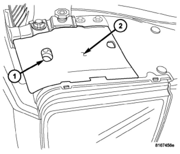 2. Insert a screwdriver through the outboard clearance hole (1) in the front lamp unit cover (2) to rotate the headlamp vertical adjustment screw on each front lamp to adjust the beam height as required.