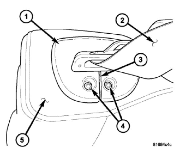 7. Install and tighten the two screws (4) that secure the escutcheon to the top of the seat back. Tighten the screws to 3 Nm (28 in. lbs.).
