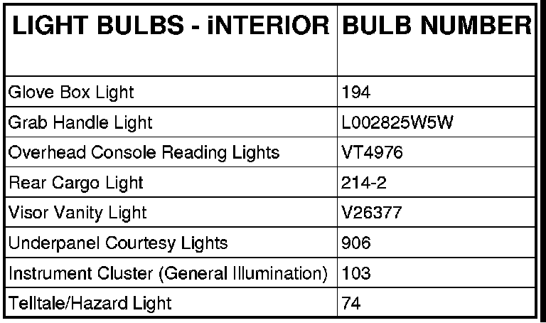 REPLACEMENT LIGHT BULBS - INTERIOR