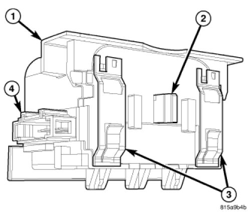 A shaft lock module (1) is part of the premium version of the Sentry Key Immobilizer System (SKIS) in the Vehicle Theft Security System (VTSS). The premium version of the SKIS is only available in vehicles built for certain markets, where the additional features offered by this system are required. The shaft lock module is located in a die cast metal bracket on the lower end of the steering column housing below the instrument panel in the passenger compartment. This unit is designed to work in conjunction with the Wireless Ignition Node (WIN) (also known as the Sentry Key Immobilizer Module/SKIM, the Sentry Key REmote Entry Module/SKREEM or the Wireless Control Module/WCM) to control a locking bolt (2) that engages a machined slot in the steering shaft to prevent shaft rotation whenever there is not a valid SKIS FOB with Integrated Key (FOBIK) present in the ignition switch on the instrument panel.