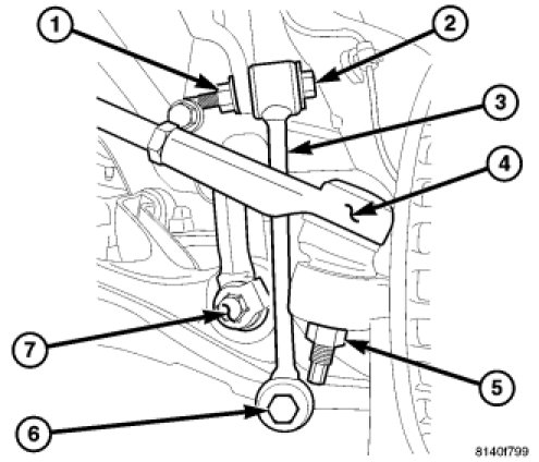 5. Install the stabilizer link (6) at the lower control arm and tighten to 115 Nm (85 ft lbs).