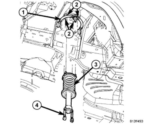 4. Remove the four upper shock mount nuts (2).