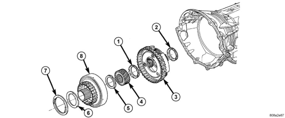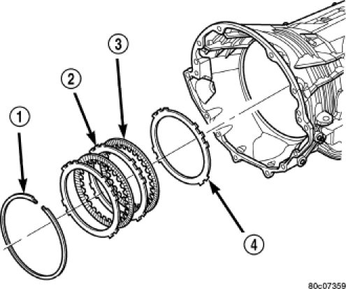 8. Install the 2C reaction plate (4) with the beveled edge down (rearward) into the transmission case.