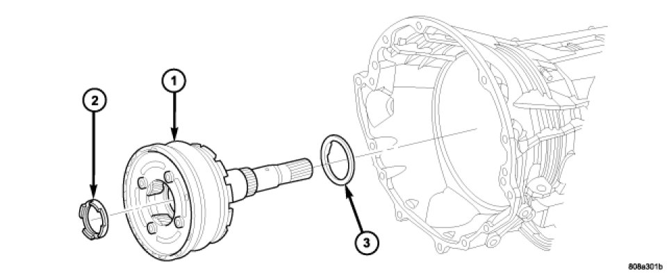 36. Apply a bead of RTV silicone and install the extension/adapter housing onto the transmission case.