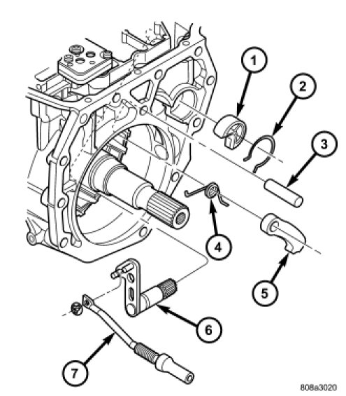 4. Install the park pawl (5), spring (4), and shaft (3).