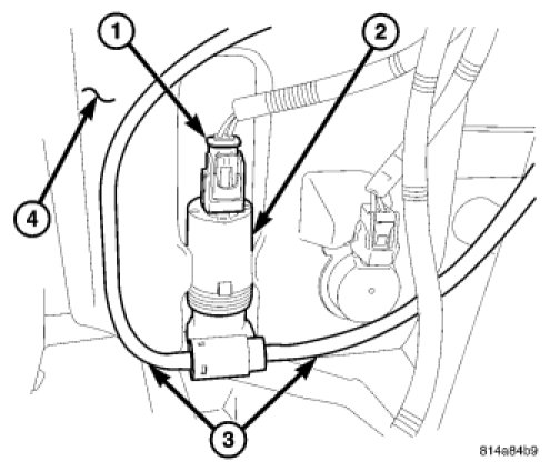 NOTE: Be certain to reconnect the front and rear washer hoses to the proper outlet nipples of the washer pump. Failure to properly connect the hoses will cause the front and rear washer systems to operate incorrectly.