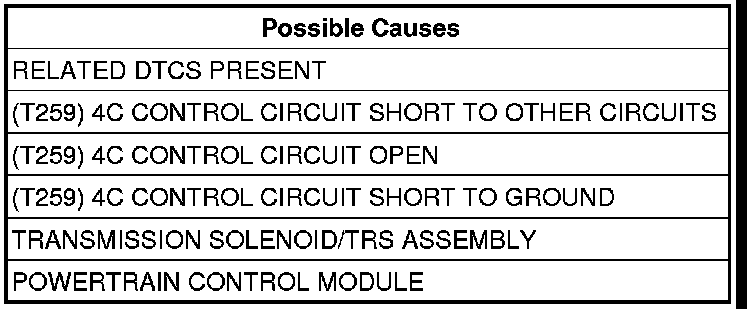 - Repair the (T259) 4C Control circuit for a short to another circuit(s).