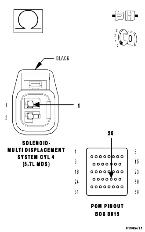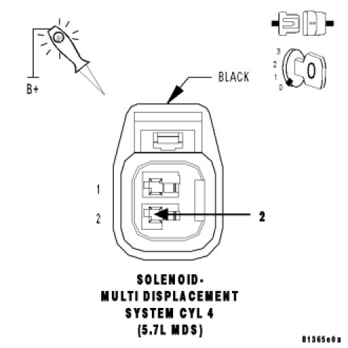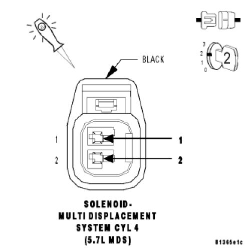 - Verify that there is good pin to terminal contact in the Solenoid and the Powertrain Control Module connectors. If OK, replace the MDS Solenoid No.4.