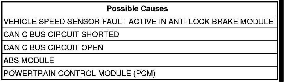 The ABS Module sends an implausible distance signal over the CAN C Bus circuit to the PCM.