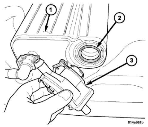 1. Install new NVLD pump o-ring (2) to EVAP canister (1).