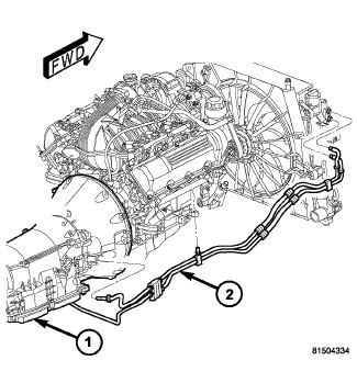 11. Position the transmission cooler lines to the transmission oil cooler.