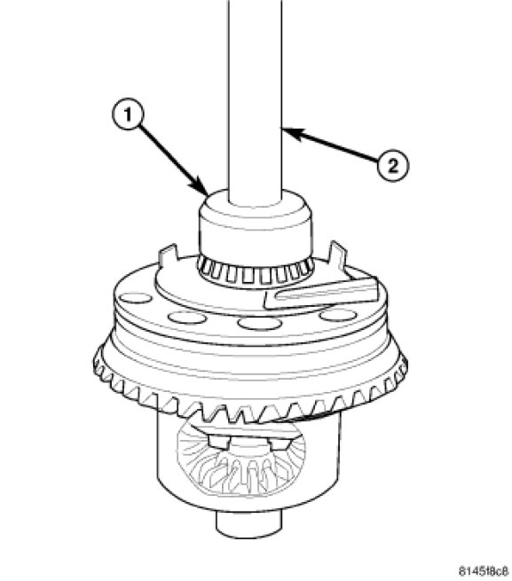 1. Install differential case bearing with Installer C-4340 (1) and Handle C-4171 (2).