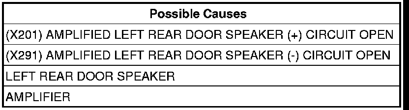- Repair the (X201) Amplified Left Rear Door Speaker (+) circuit for an open.