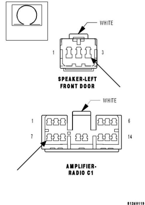 With a voltmeter set to read in A/C voltage, measure the voltage of the Amplified Left Rear Door Speaker circuits in the Amplified Left Rear Door Speaker harness connector.