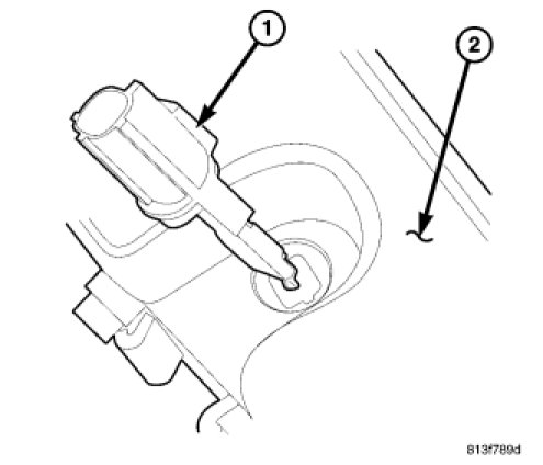 Install the sensor (1) with a new o-ring into the reservoir (2) until the locking tabs are engaged.