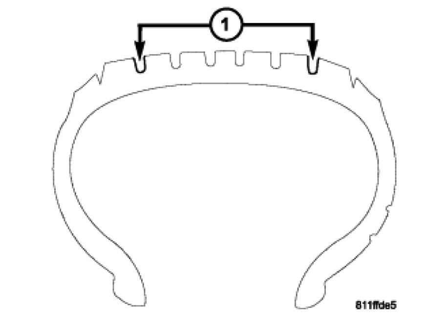 For proper repairing, a radial tire must be removed from the wheel. Repairs should only be made if the defect, or puncture, is in the tread area (1). The tire should be replaced if the puncture is located in the sidewall.