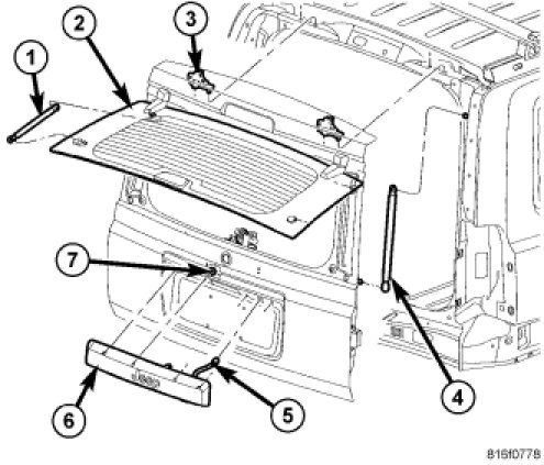 3. Disconnect glass support cylinders (1) at the lower ball studs, Removal