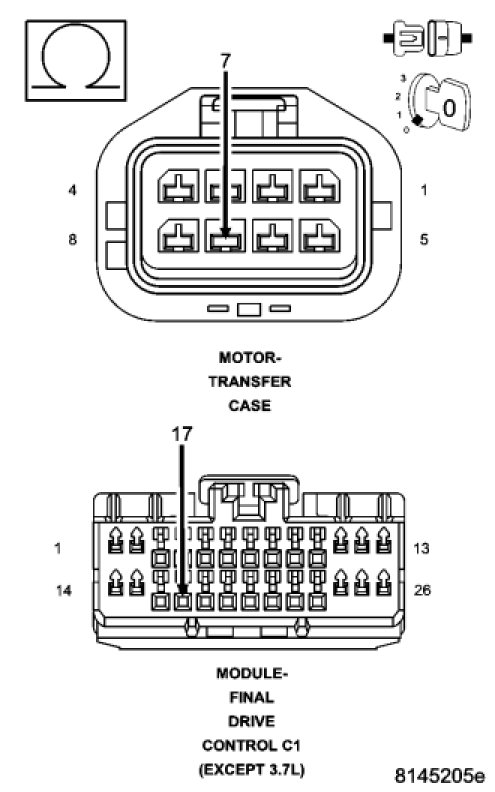 NOTE: As a failsafe precaution when either the Front Differential Solenoid, Rear Differential Solenoid, or the Transfer Case Motor harness connectors are disconnected, the DTCs must be cleared in the FDCM. Failure to follow this will result in the FDCM detecting this condition and turning OFF the Switched Battery Solenoid Supply circuit.