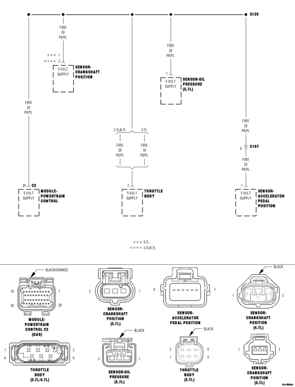 Disconnect all the Sensors that share the (F855) Primary 5-volt Supply circuit.