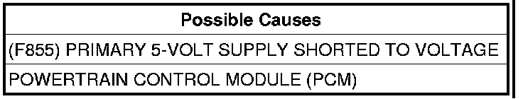 2. (F855) PRIMARY 5-VOLT SUPPLY SHORTED TO VOLTAGE