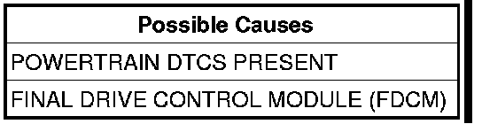 The Final Drive Control Module is receiving implausible data for pedal position, engine RPM, torque, or engine coolant temperature from the PCM.