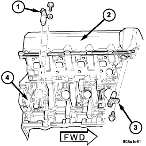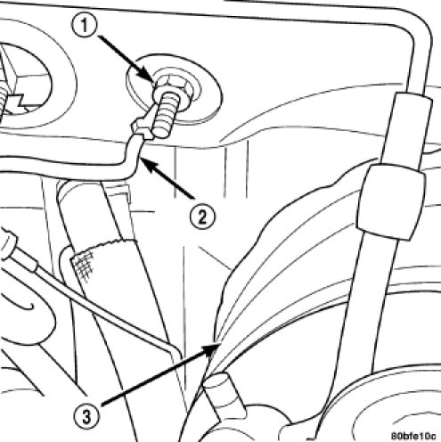 10. Position generator wiring behind the oil dipstick tube, then install the oil dipstick tube upper mounting bolt.