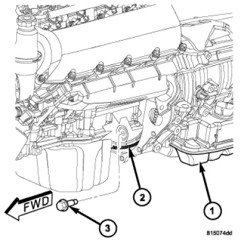 5. Install transmission to bellhousing bolts (3). Tighten the bolts to 41 Nm (30 ft. lbs.).