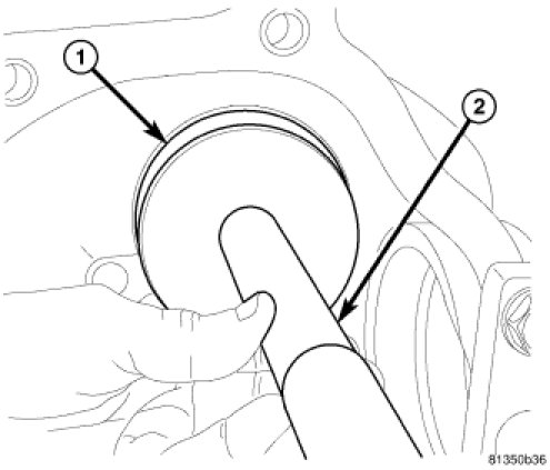 4. Install pinion depth shim (1) in rear pinion bearing cup bore (2).
