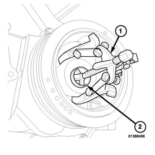 15. Remove crankshaft damper (2) Vibration Damper - Removal.