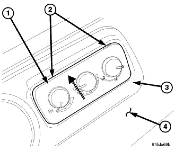 1. Position the rear A/C-heater control (1) near the bezel (3) located in the right interior quarter trim panel (4).