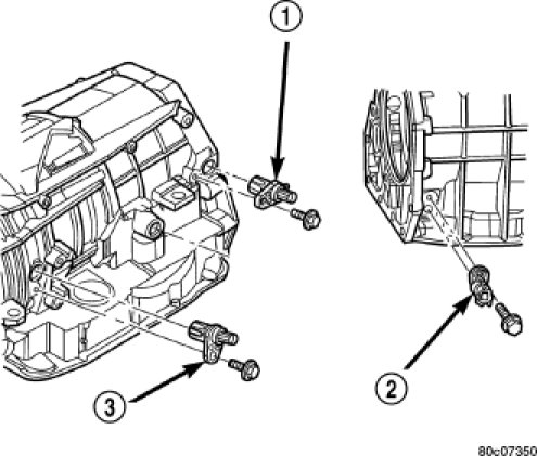 2. Install the bolt to hold the line pressure sensor (2) into the transmission case. Tighten the bolt to 12 Nm (105 in.lbs.).