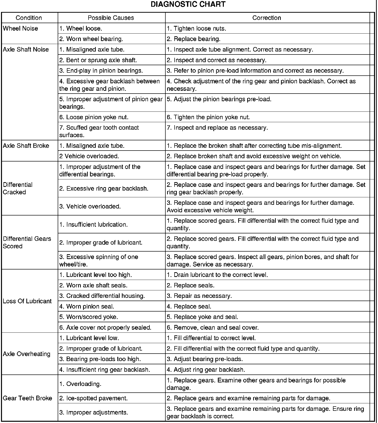 Axle gear noise can be caused by insufficient lubricant, incorrect backlash, tooth contact, worn/damaged gears or the carrier housing not having the proper offset and squareness.