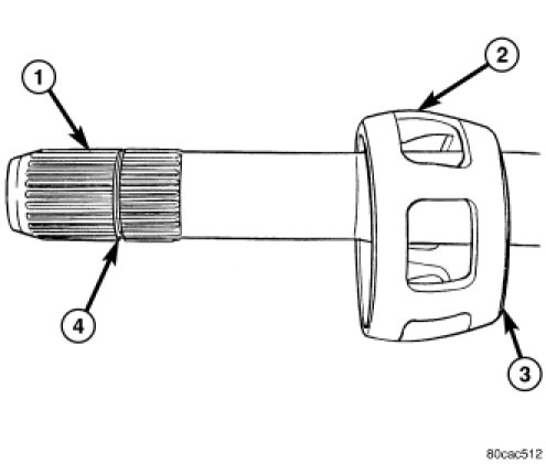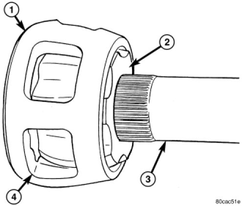3. Slide cage (2) onto the shaft (1) with the small diameter (3) end towards the boot.