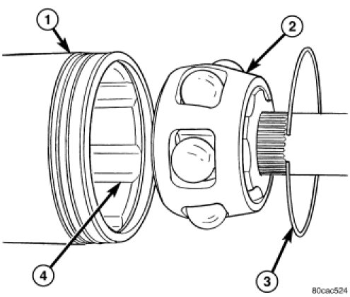 4. Install inner race (1) onto the shaft (3). Verify snap ring has engaged on shaft (3).