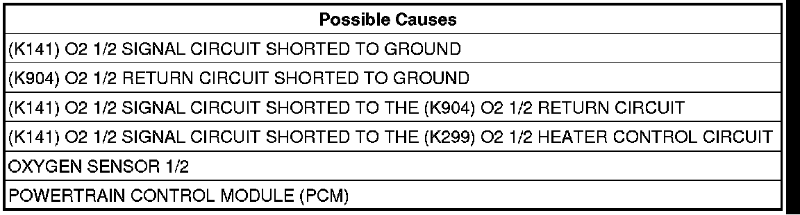 - Repair the (K141) O2 1/2 Signal circuit for a short to ground.